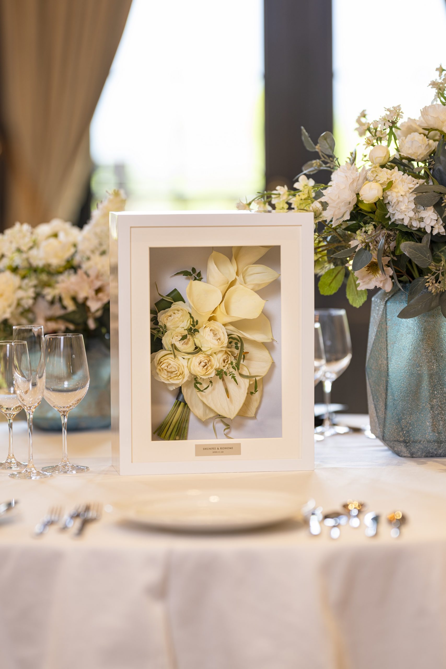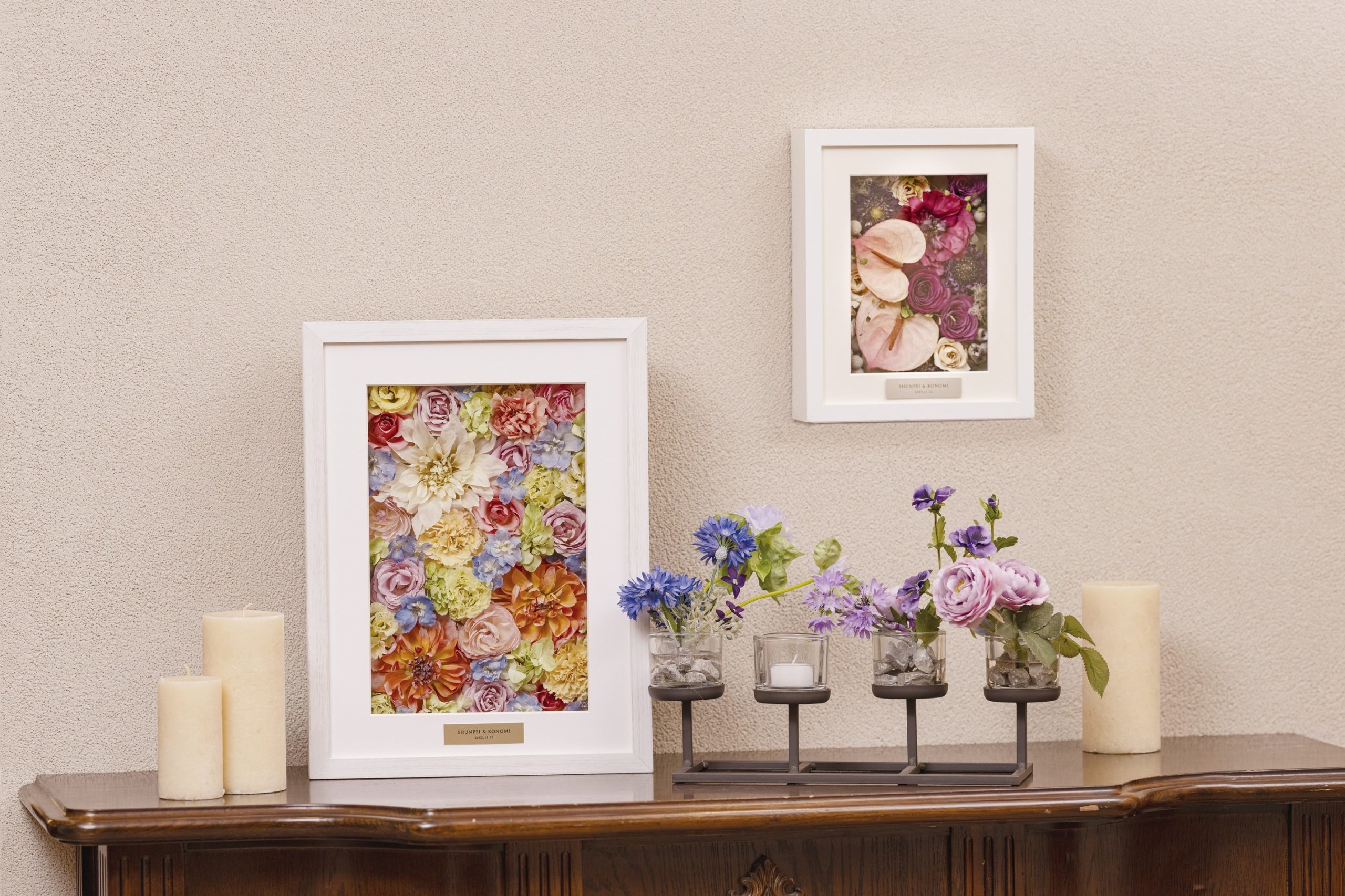 ウェルカムボードだけでなくプリザードフラワー、ドライフラワーなど、フラワーアレンジメントもお客様のご要望に合わせてお作りします。